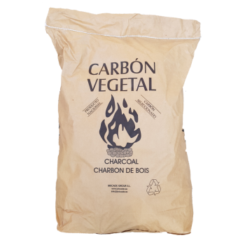 Carbón vegetal de alta calidad pues procede de leña de encina de podas controladas y que después es quemada en hornos a la manera tradicional, obteniendo de así un carbón de gran dureza y alto poder calorífico, proporcionando brasas duraderas que lo hace ideal para barbacoas.