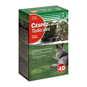 -Con los componentes de esta mezcla se obtendrá rápidamente un tapiz denso y poco exigente en mantenimiento. -Adaptado al pisoteo frecuente. -Color verde oscuro intenso y aspecto fino. -Rápida instalación buena adaptación a diferentes tipos de suelo. -Altura de siega 40mm o más. Dosis de siembra 25g/m2