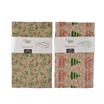 CAMI DE TAULA LEAF PRINT WHITE /RED 32X150CMS