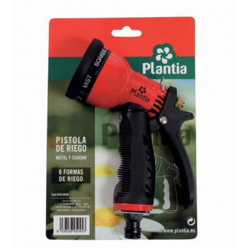 PISTOLA METAL Y CAUCHO CON 6 FORMAS DE RIEGO CON MANGO ALARGADO
