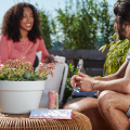 La maceta elho, de diseño lineal, ha sido creada específicamente para decorar la mesa exterior y para aportar más verde al balcón o a la terraza. El cómodo tanque del fondo de la maceta permite que la planta acumular el agua sobrante para utilizarla en los períodos más secos. Podrás disfrutar tranquilamente de las largas jornadas estivales sabiendo que a tus plantas no les falta nada. Con la combinación de esta maceta con las demás de la misma colección puedes completar tu jardín de ciudad.