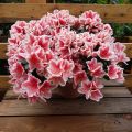 L'Azalea japónica és un arbust de fullatge persistent, molt ramificat de 1-1,5 metres d'altura. Les seves fulles són el·líptiques i les seves flors de color blanc, rosat, o violeta.