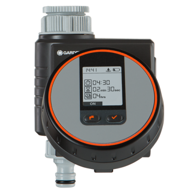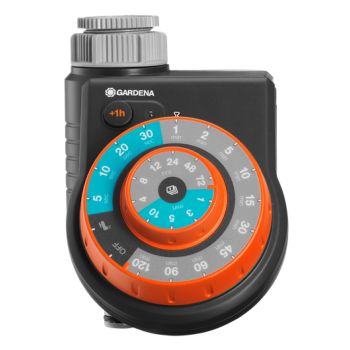 Gracias al temporizador para agua Easy Plus de Gardena obtendras una programación sencilla de las funciones básicas simplemente girando los dos botones rotadores, cuenta con hasta 60 programas ya preestablecidos con una duración y frecuencia determinada, 16 de ellos son combinaciones para el nebulizador. El panel de programación se puede mover para que la programación resulte mucho más sencilla y cómoda. Funciona con una pila de 9 V ( no incluida) y te avisará cuando el nivel de batería sea bajo. Además se puede poner el comienzo del riego desde a una hora adicional hasta 23 horas adicionales. La configuración del nebulizador tiene una duración de 5/10/15/20/30 segundos e intervalos cada 1/3/5/10 minutos.