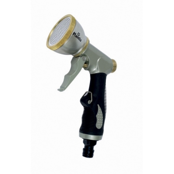 PISTOLA METAL Y CAUCHO CON 6 FORMAS DE RIEGO CON MANGO ALARGADO